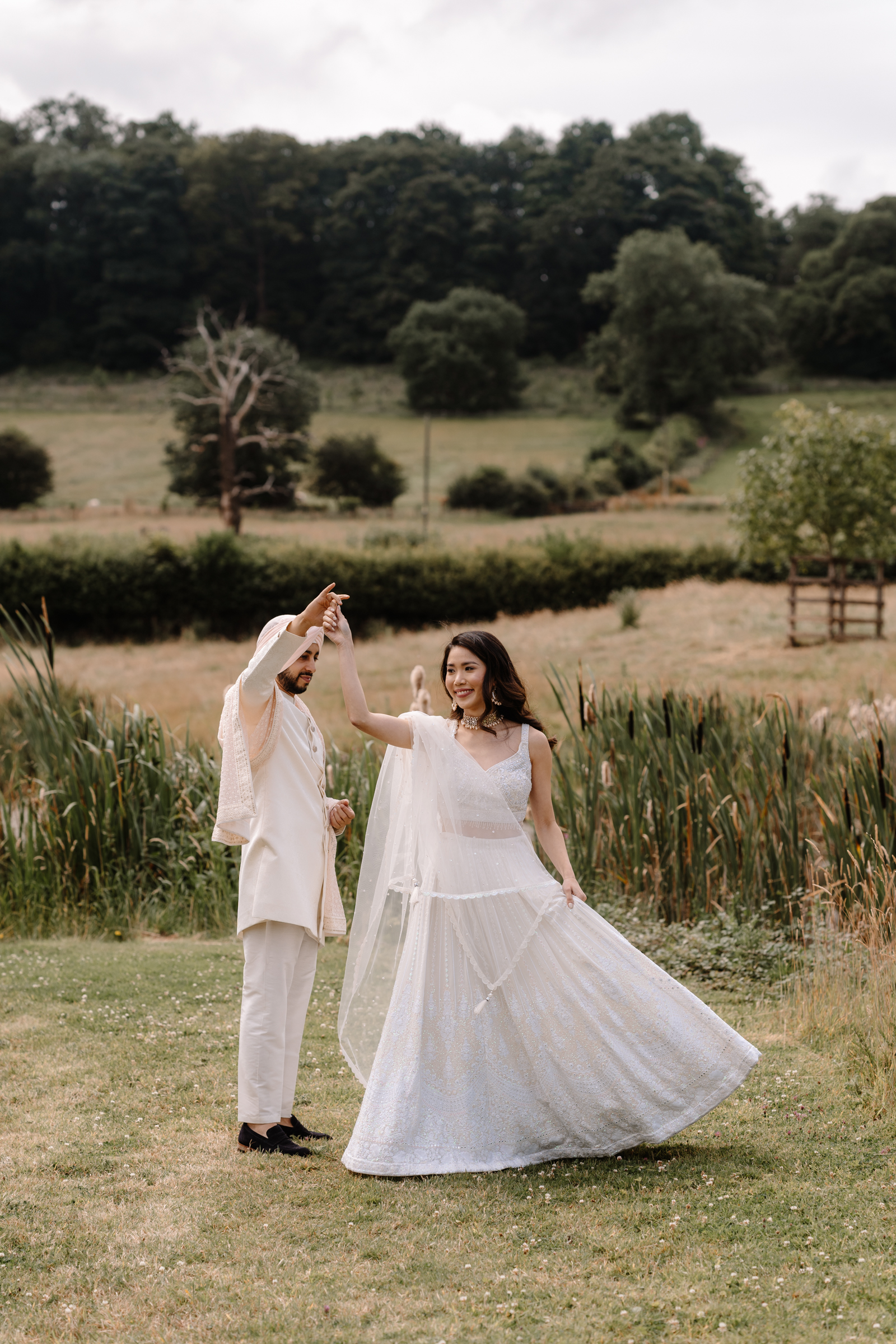 It was wonderful getting to know Penny and Aman ahead of their wedding celebrations. I later had the pleasure of photographing their Chinese tea ceremony at Aynhoe Park, followed by their full wedding celebrations at Primrose Hill Farm, which beautifully combined Indian traditions with a Western civil ceremony. Across all occasions, Penny wore five incredible dresses in total – each one completely different and so thoughtfully chosen.