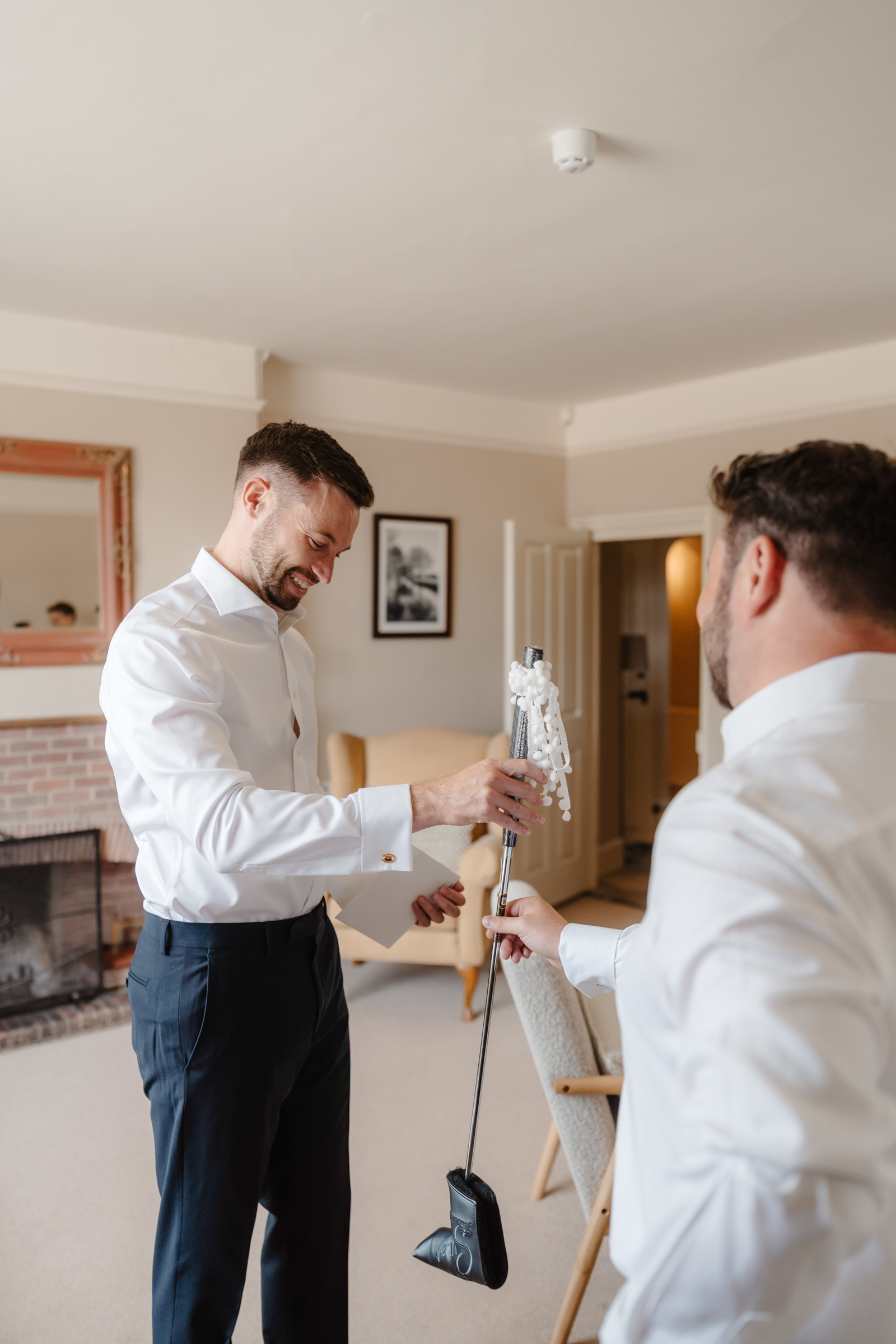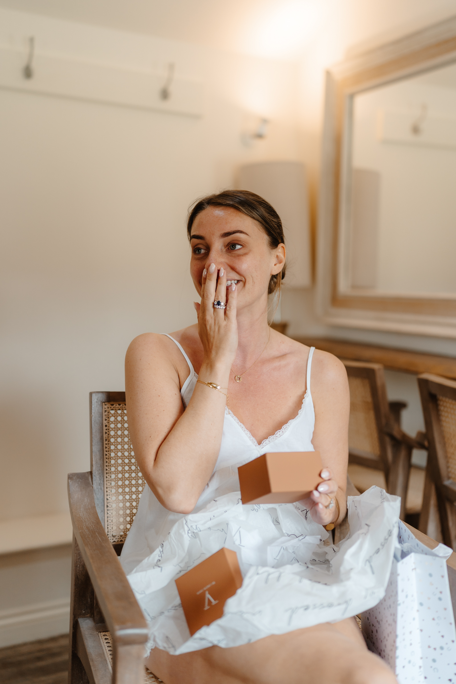Diarmuid got ready in the main house alongside the groomsmen, while Bethan spent the morning in Caswell’s bridal prep space with her bridesmaids. Both sides of the morning carried the same atmosphere – relaxed, light, and full of excitement as the day began to take shape. They exchanged handwritten cards and thoughtful surprise gifts – such lovely moments to witness as a photographer!