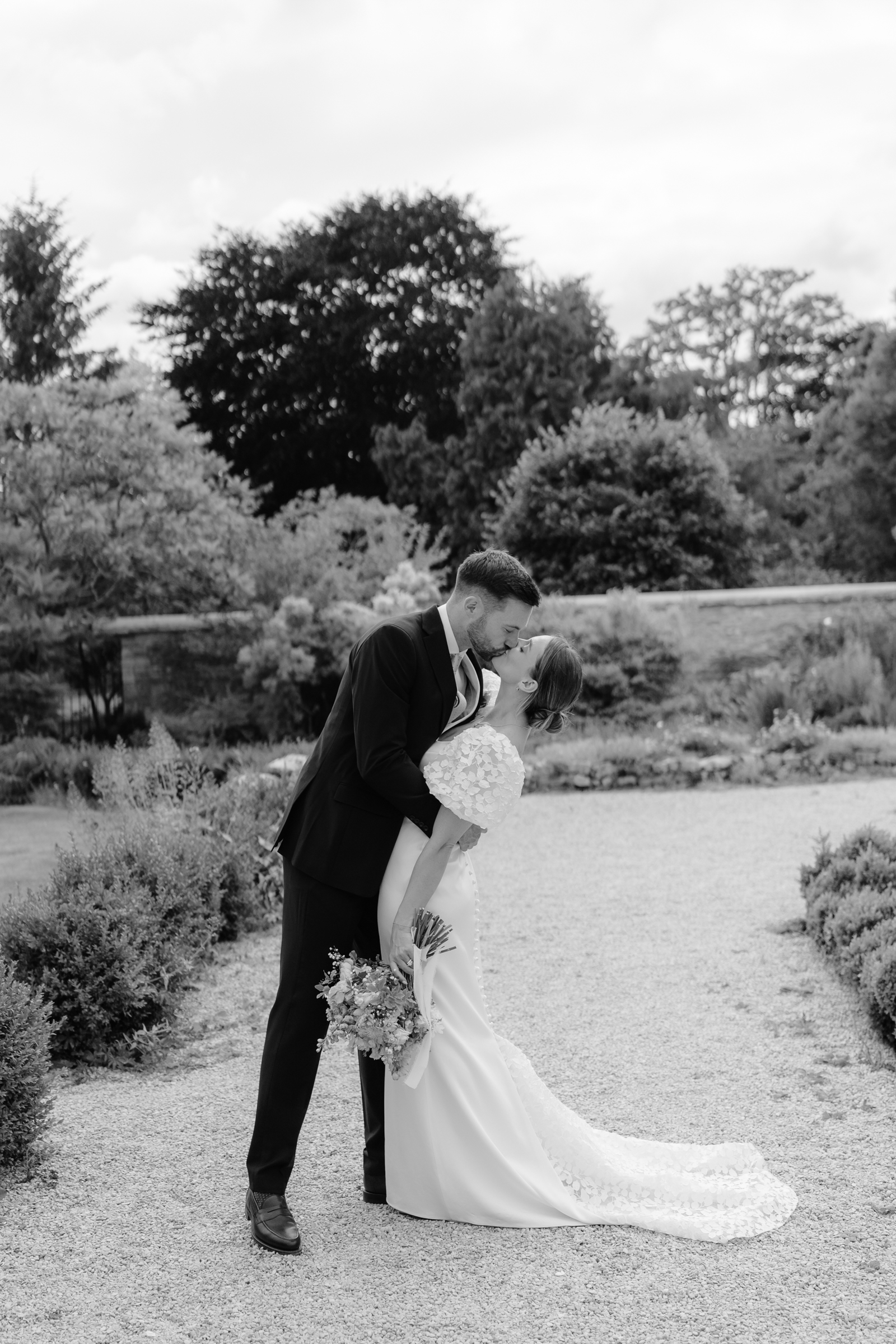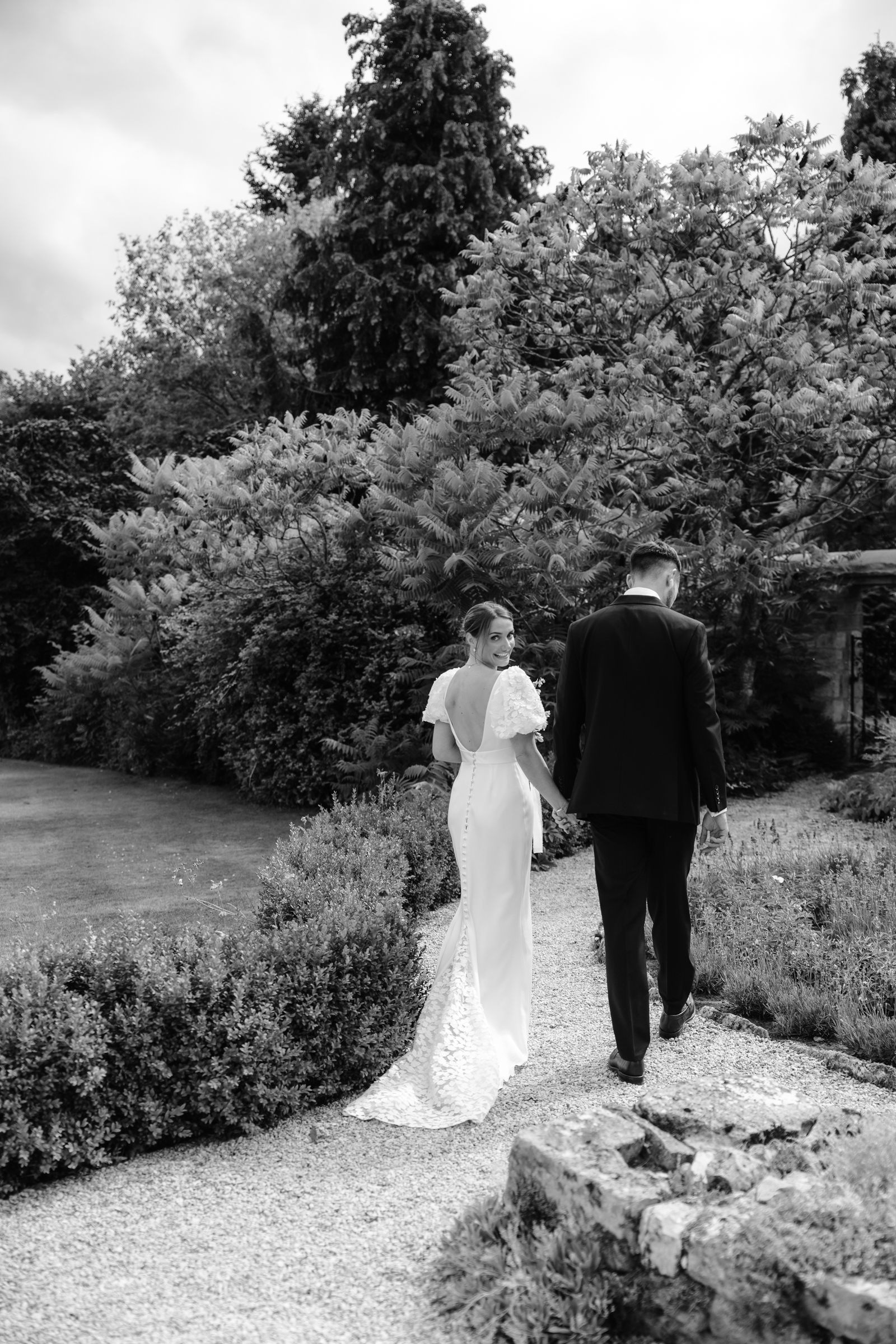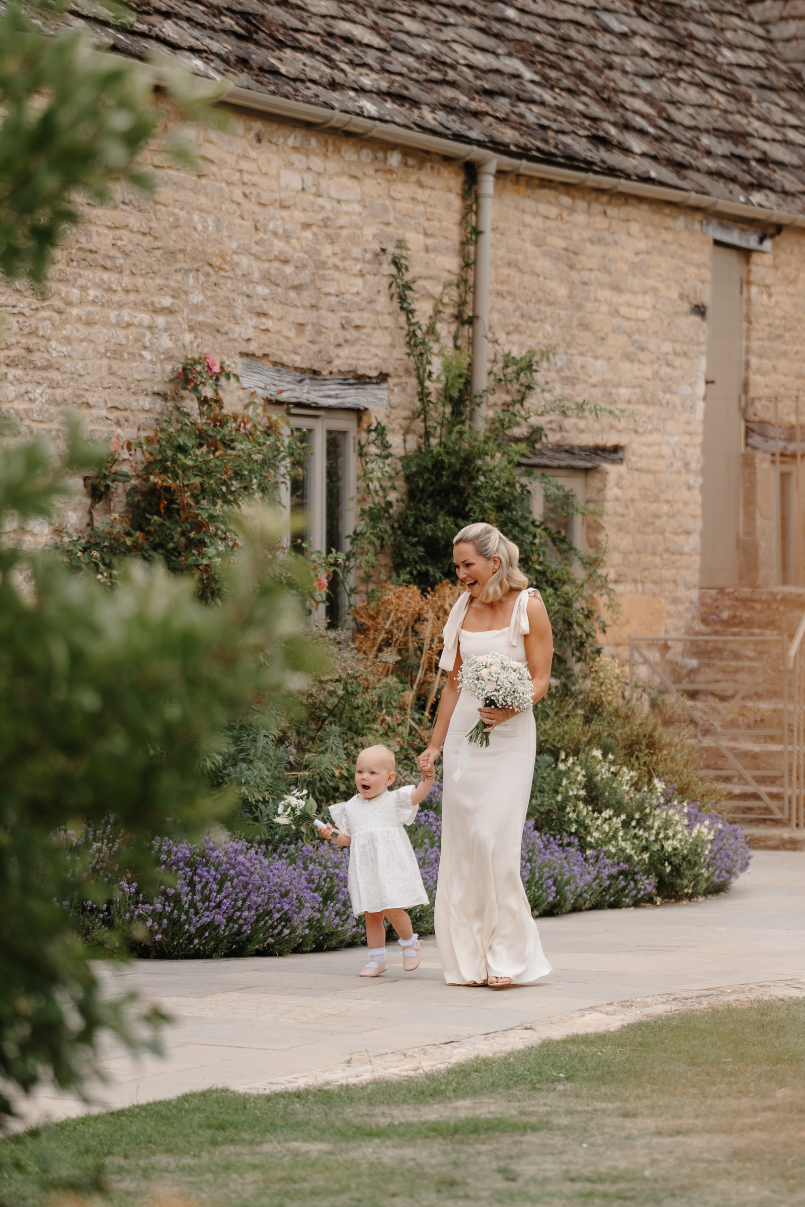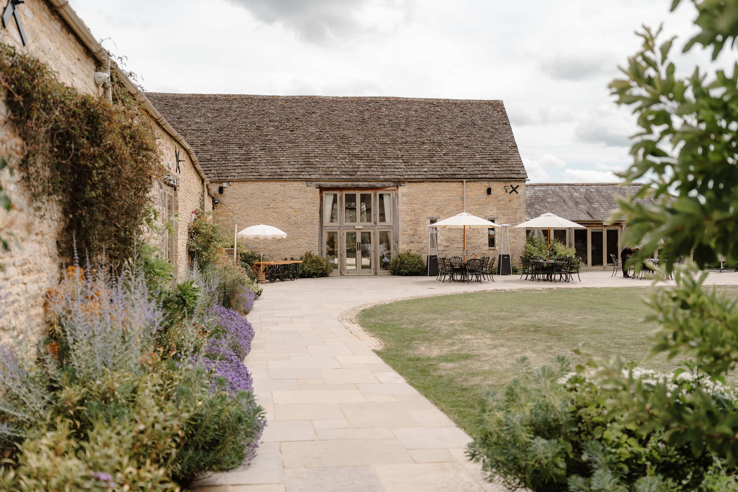 The stone barns, courtyard, gardens and surrounding countryside all sit close together, giving so much choice for couples portraits. We slipped away towards the end of drinks reception to capture a few photographs of just the two of them, making the most of the setting without keeping them from guests for long. One of my favourite spots in June is the purple lavender lined pathway, which sits in full bloom at that time of year – a beautiful, seasonal backdrop that always feels particularly special to photograph.