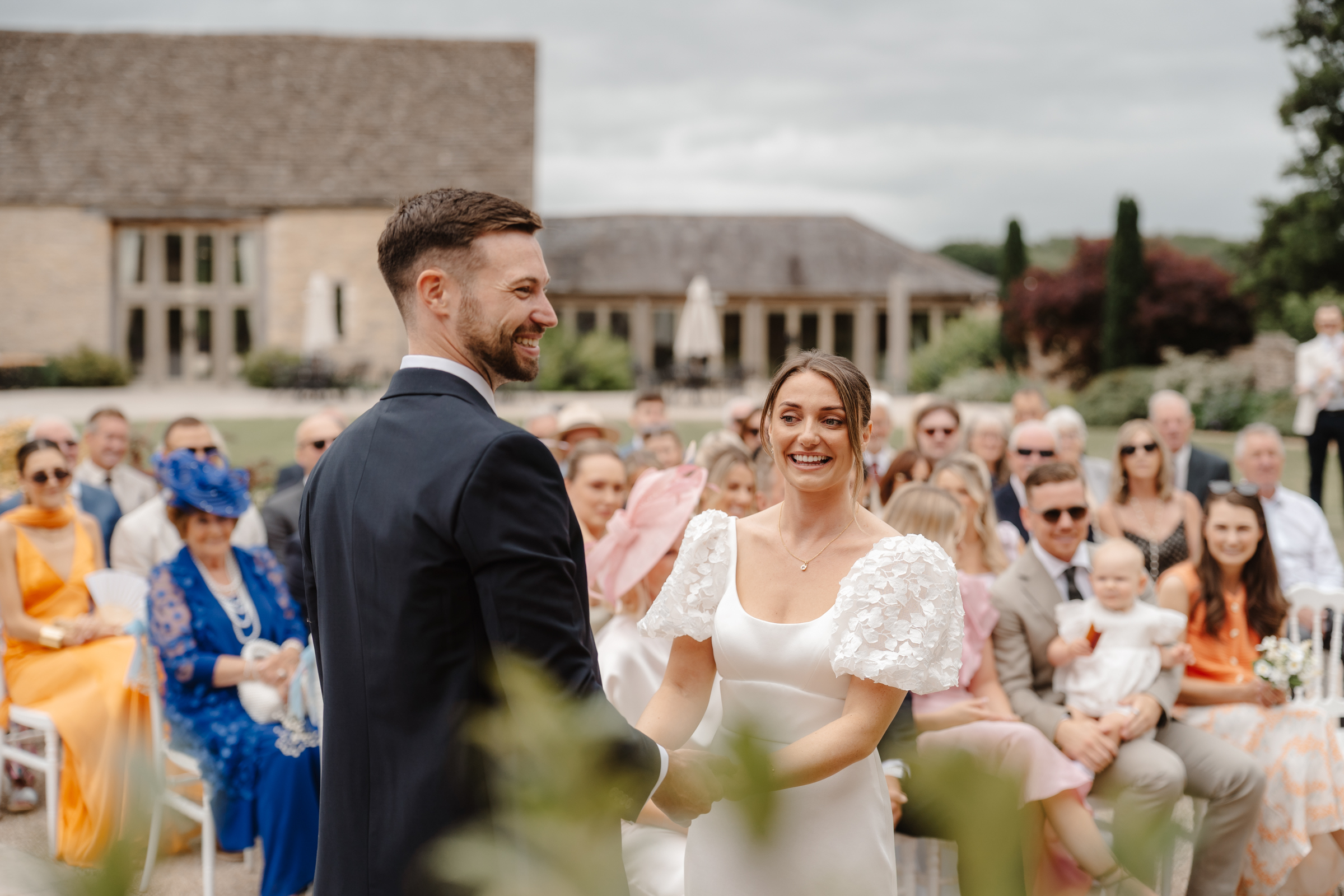 Despite a questionable weather forecast, Bethan & Diarmuid held firm with their plan for an outdoor ceremony and it couldn’t have come together more perfectly. Caswell House is one of those venues that works beautifully in any setting, but when the weather allows, the gardens really do create the most stunning ceremony location. It’s a space I always love photographing – calm, intimate and framed by cotswold stone. As the ceremony drew to a close, the rain began to fall – almost as though it had held off just long enough for them to have the outdoor ceremony they’d hoped for.