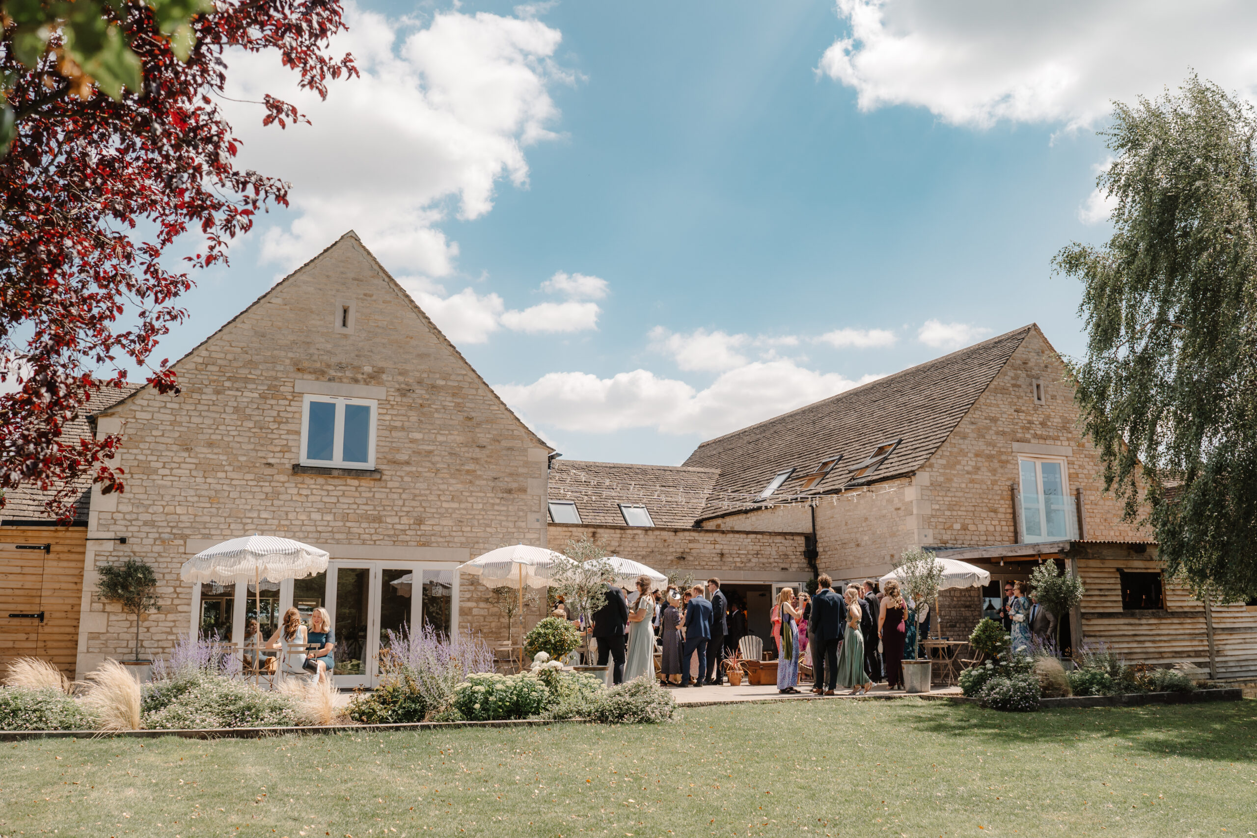 Most Hyde House ceremonies take place in The Grange, an elegant, purpose-built barn featuring large windows that fill the space with natural light. It offers a bright, contemporary atmosphere while retaining a little rustic charm that you’d expect from a Cotswolds barn.