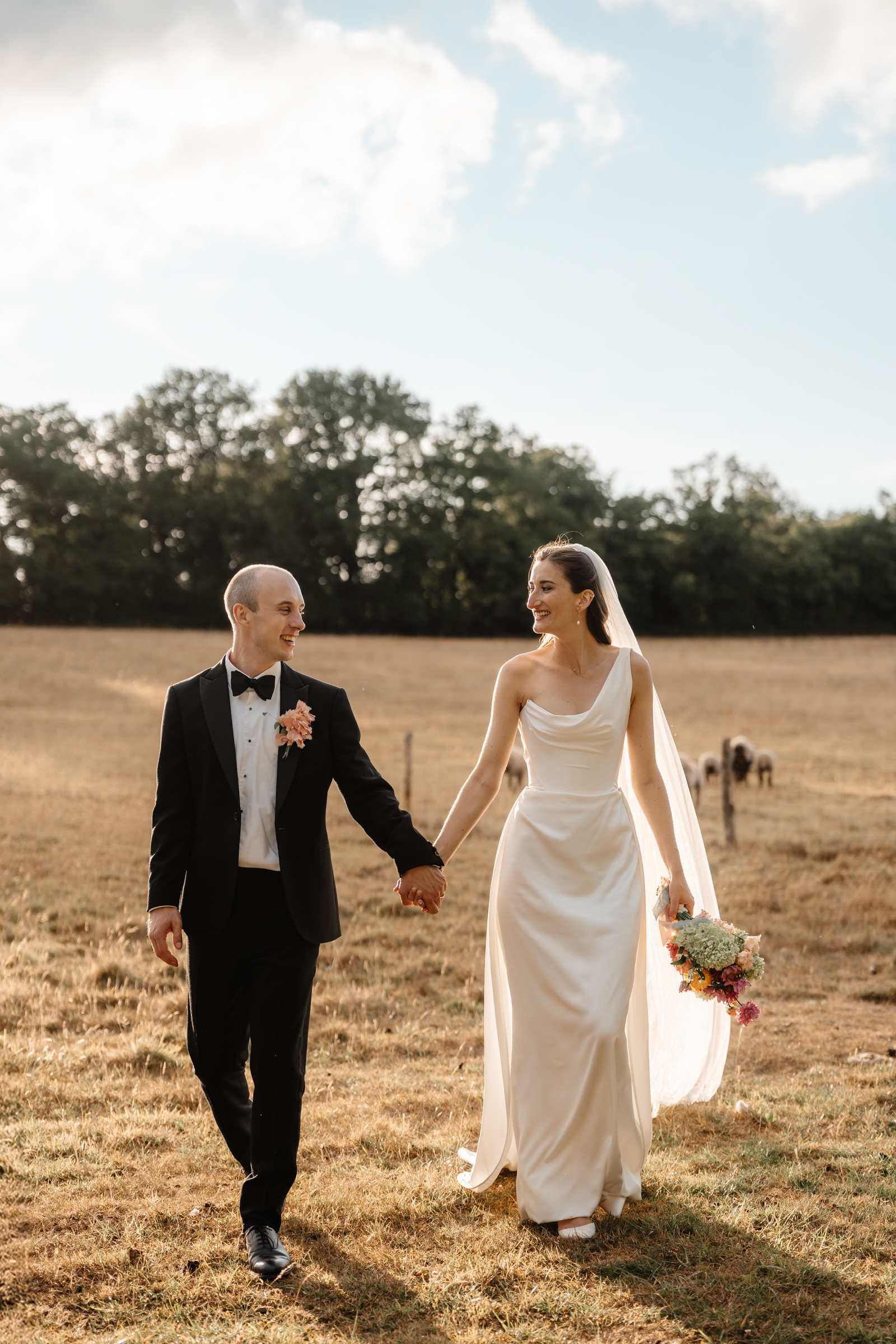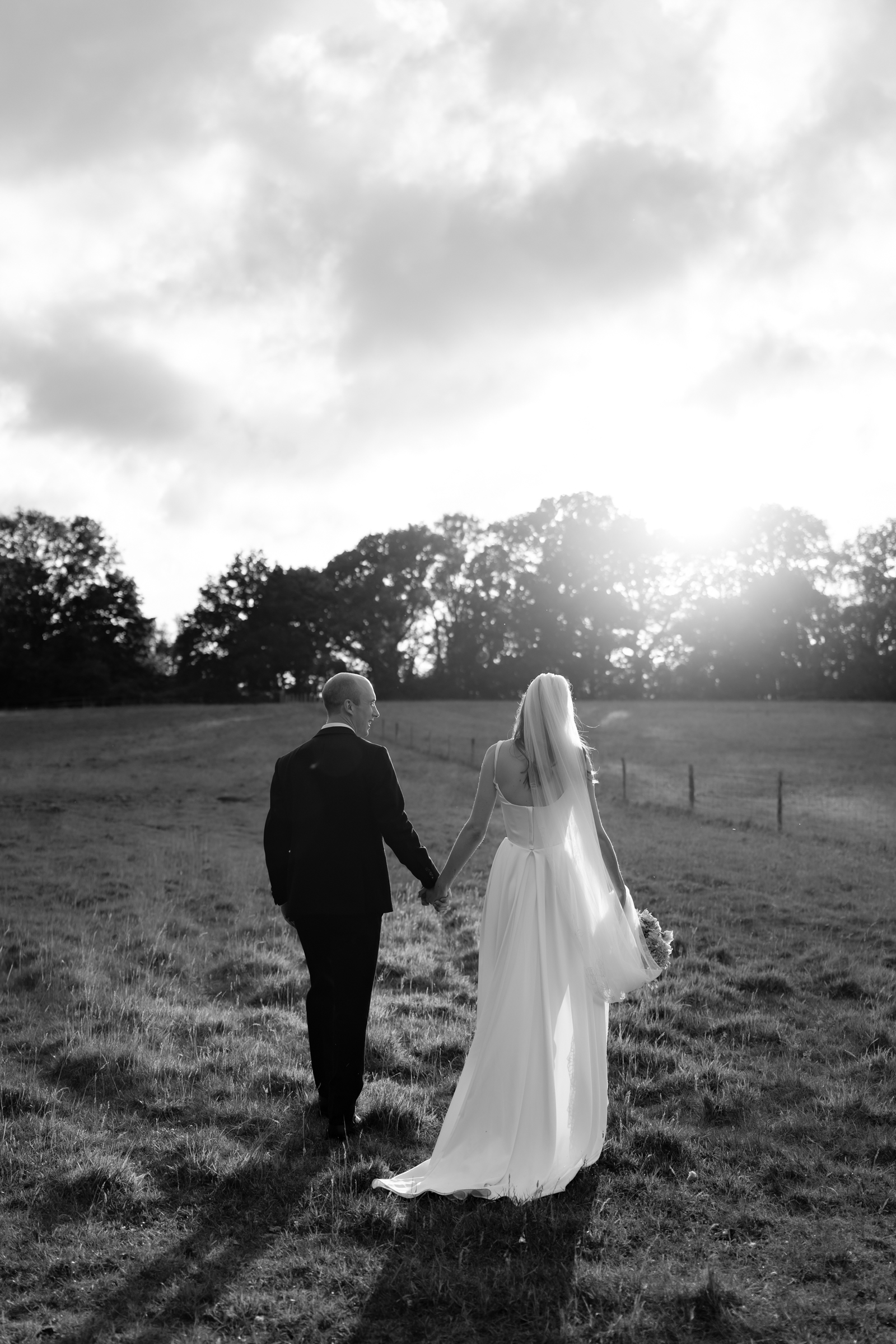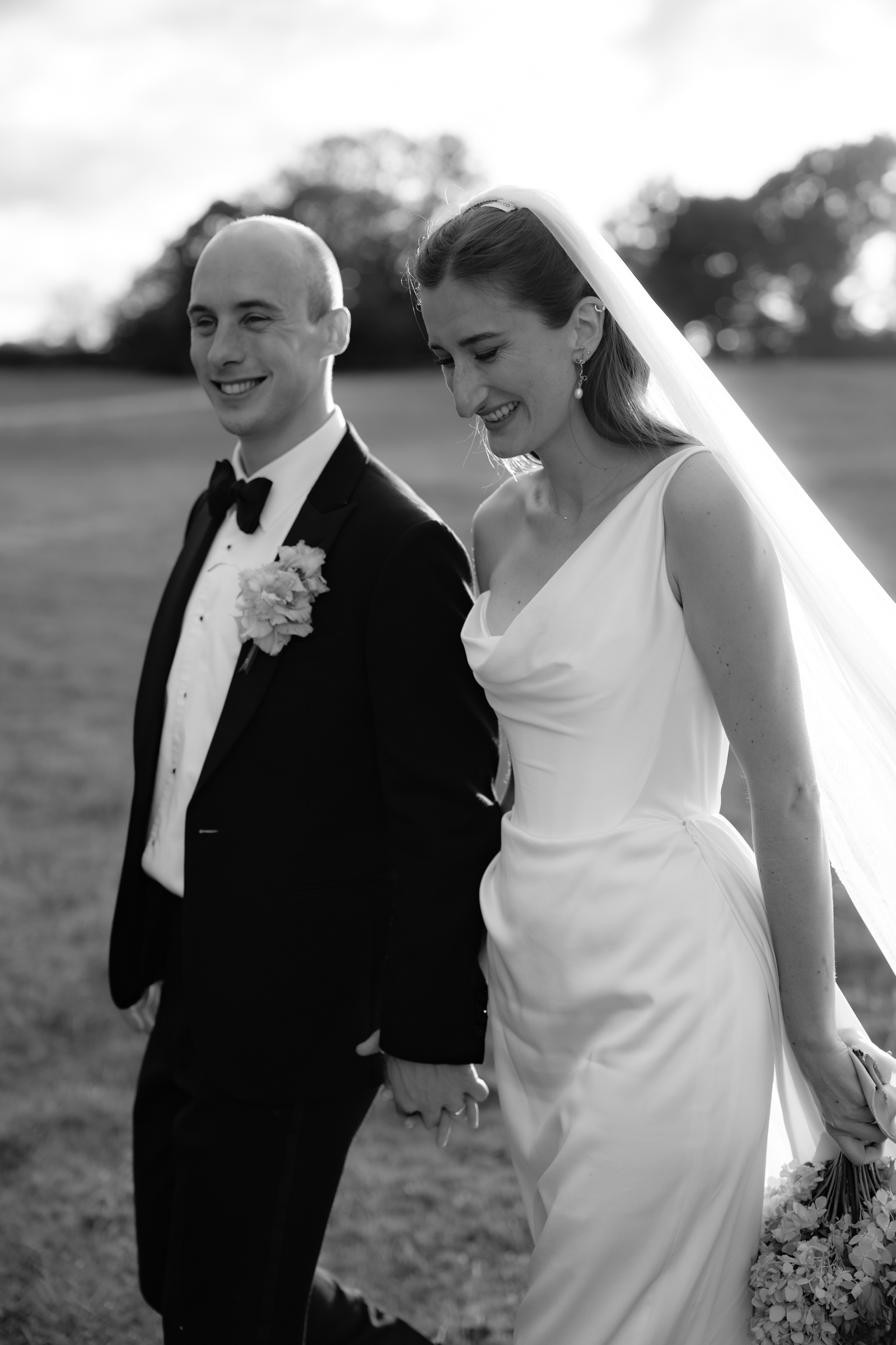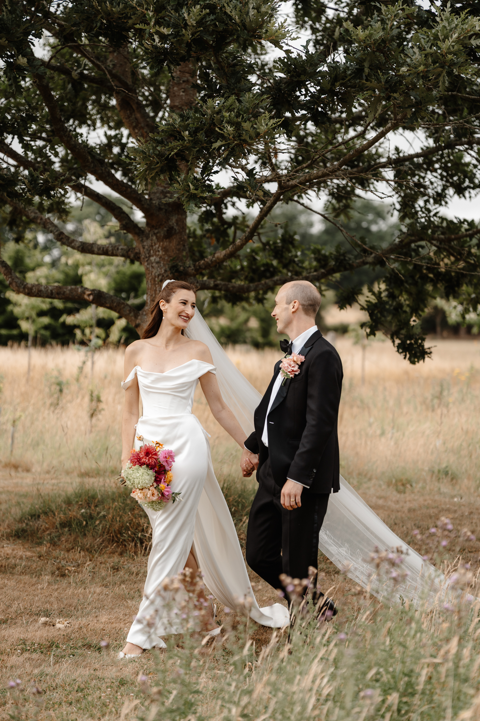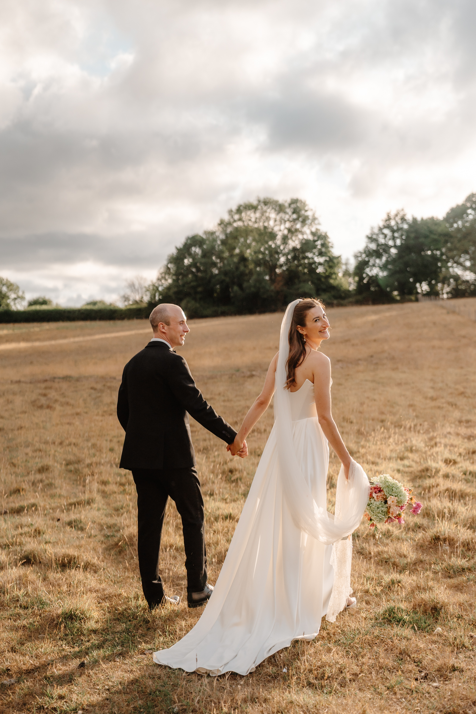 I always like to carve out a little time for couples portraits at the end of the drinks reception, so we slipped away while guests were being called to take their seats. This means the couple don’t miss out on too much of the reception and can stay fully present with friends and family. My approach for couples photos is always super relaxed – lots of walking, chatting and gently guided moments rather than anything overly posed. It keeps everything feeling natural as we wander through the beautiful rural backdrops the venue has to offer.