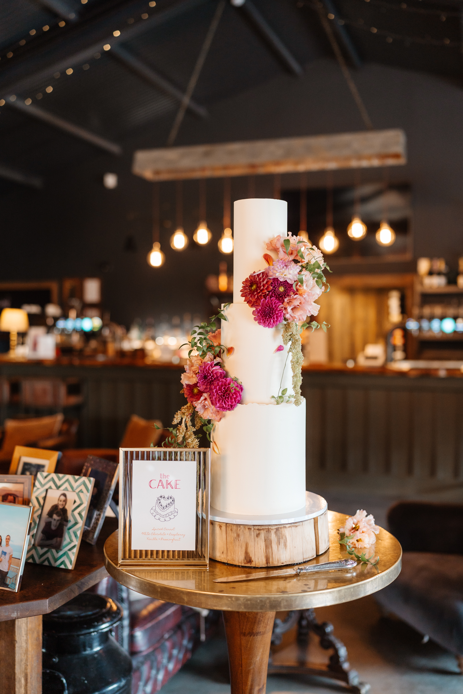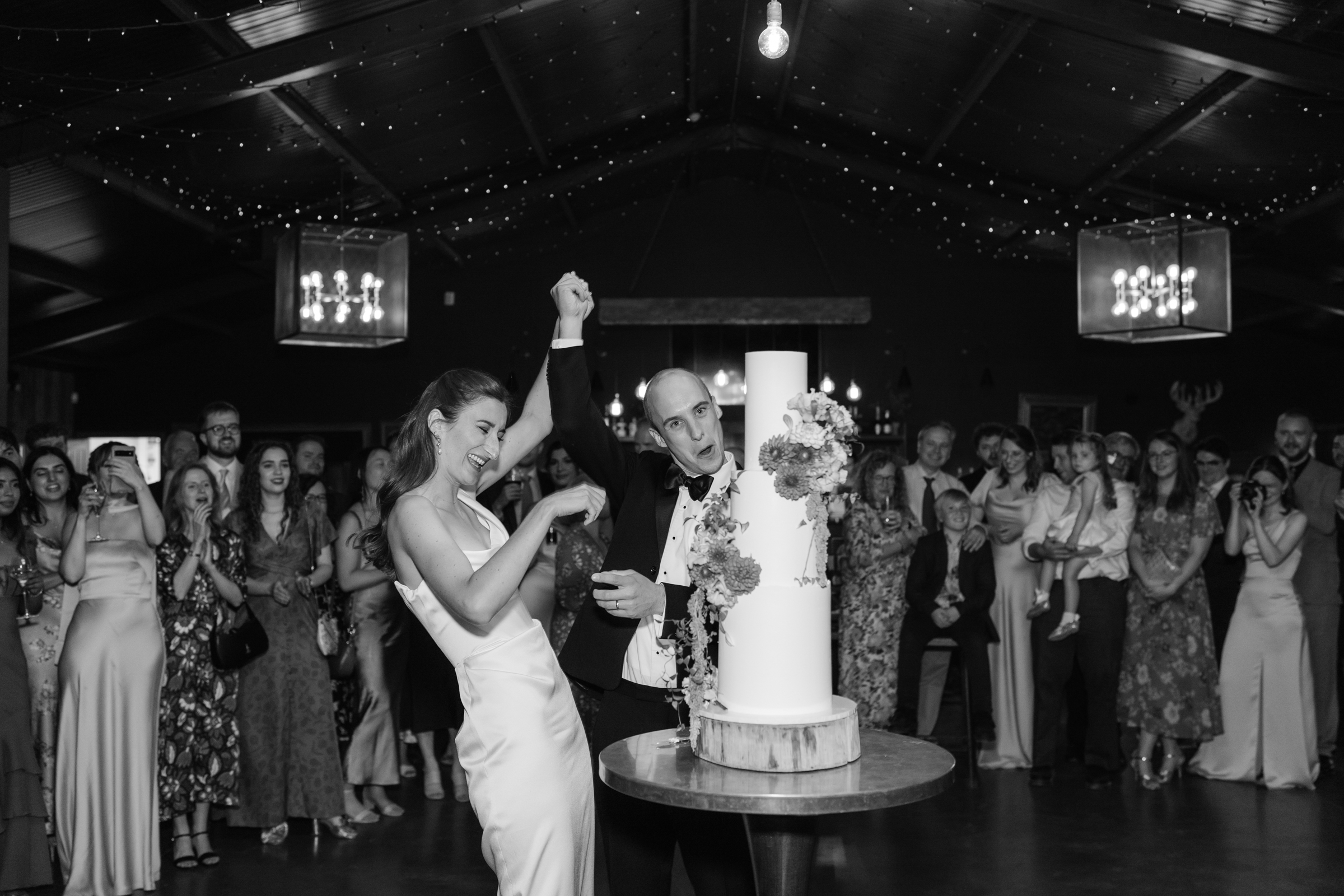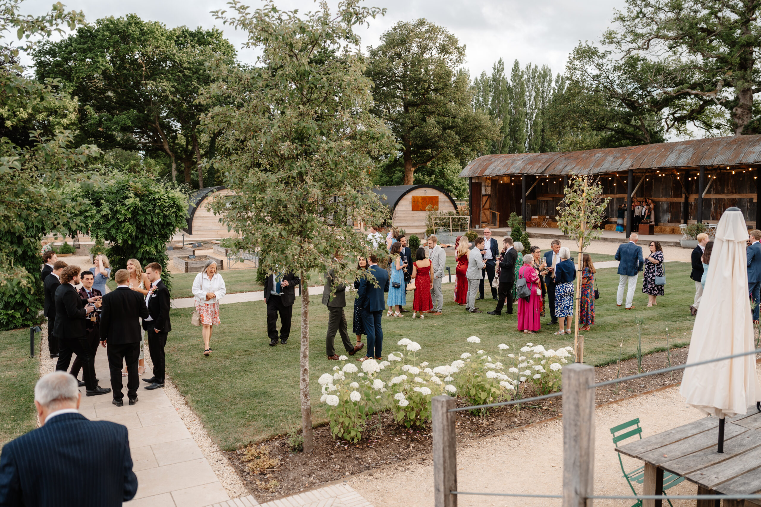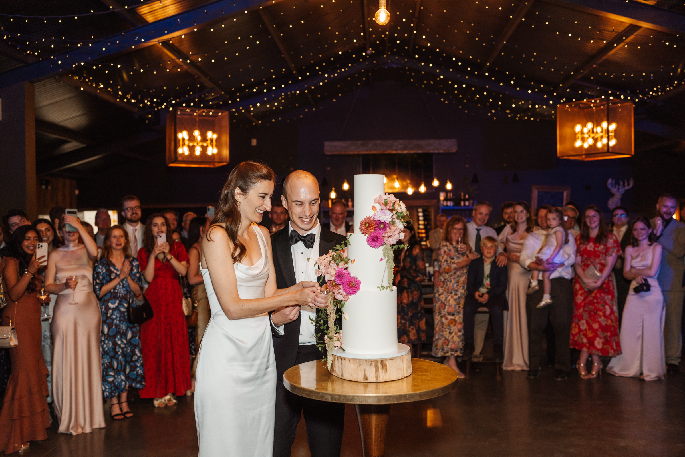 The ‘Cow Shed’ barn looked beautiful – long tables set beneath the timber beams and pink florals running through the styling, candlelight warming the rustic textures of the space. It struck that perfect balance Silchester does so well – relaxed but atmospheric.