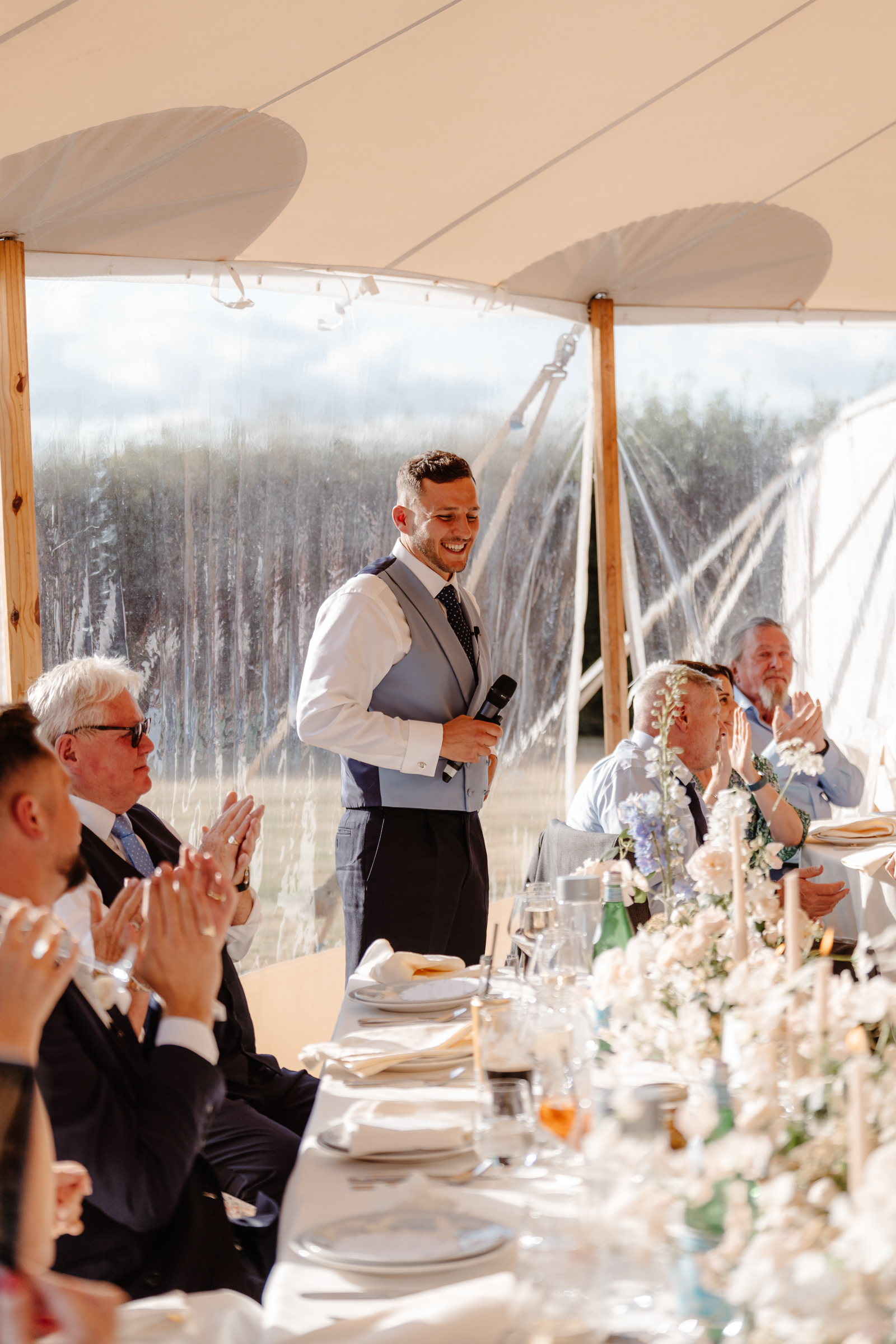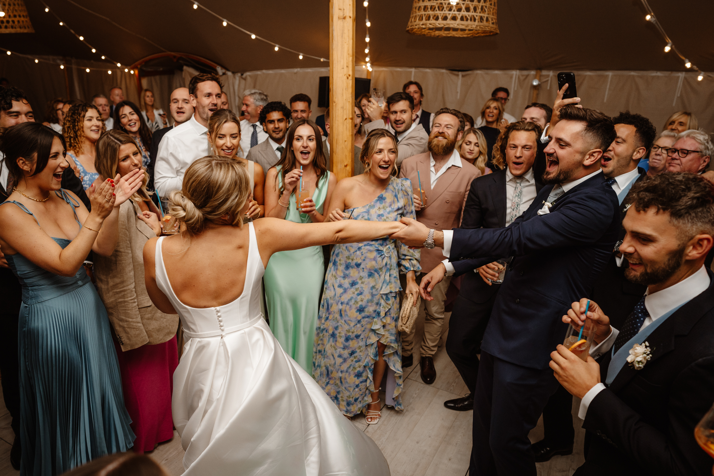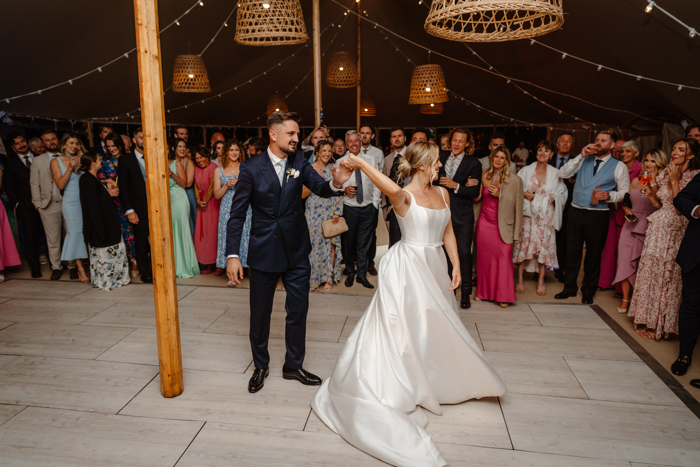 The evening celebrations then kicked off with a quick first dance, before all their guests flooded the dancefloor. There’s something about a marquee party – the dancefloor is always amazing. Full of energy, joy, and the best kind of chaos to end the night.