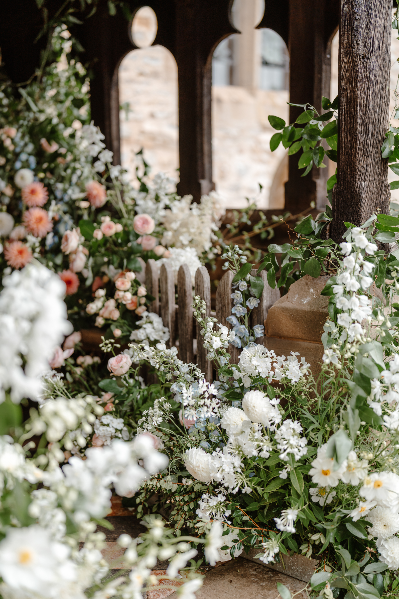 The porch alone was filled to the brim with garden blooms – overflowing arrangements that felt as though they’d grown there naturally. As guests arrived and walked through, the scent of fresh flowers was incredible.