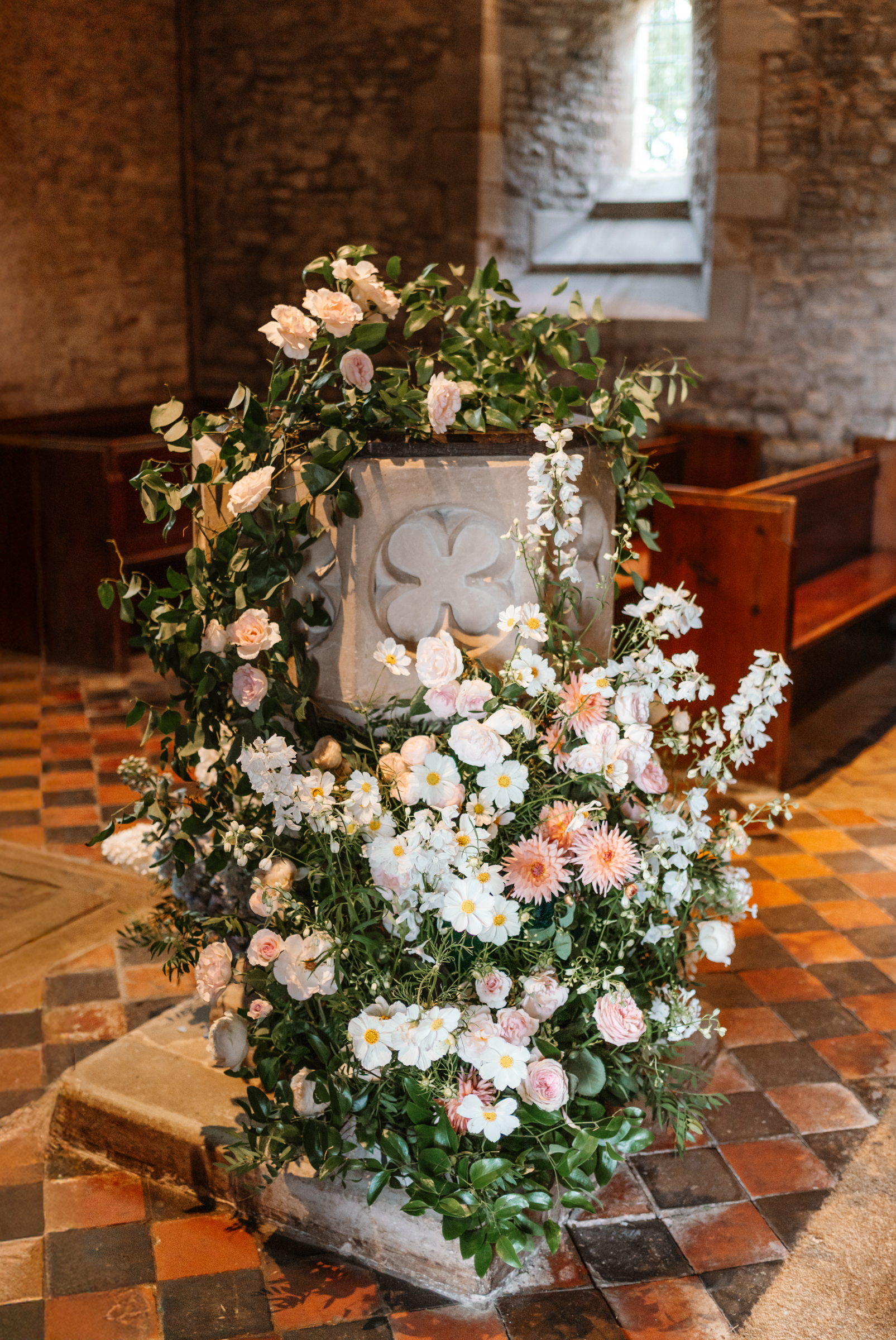 The ceremony itself was heartfelt and traditional, surrounded by more beautiful florals at the top of the church, perfectly framing Lydia & George.